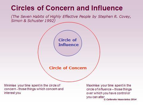Stephen Covey knew a thing or two. I’ve lost count of the times I’ve used his ‘Circles of Concern and Influence’ model in my training, mentoring, management, leadership and one to one work over the years. We can either commit our energy to things that concern us (world poverty, the global environment, social injustice) or things that we can influence (living more sustainably, actively supporting those in need, living with care and compassion). We can expend energy and time talking about what “someone should do” or get on and do something ourselves. The more time we spend in our circles of influence, the more effective we become – partly through not wasting time and energy on what we cannot change and partly because we get better at influencing. We can use the model as individuals, groups or teams, localities, political or economic groupings, countries……the list is endless.